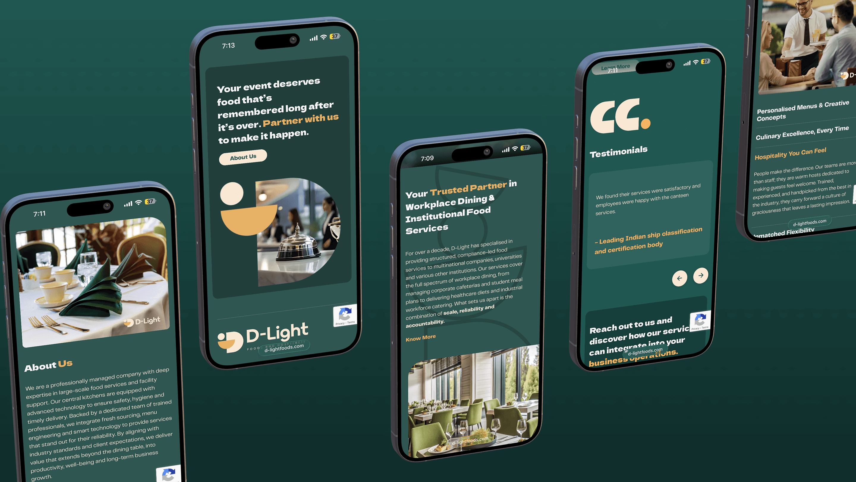 D-Light Food & Hospitality operates in one of the most crowded corners of the catering market, where dozens of competitors offer similar services under almost identical names. The real problem was never the food. It was discoverability and identity. Without a distinct visual presence or a clear digital strategy, even a great business can disappear into the noise. Research revealed that most competitors looked and sounded the same, using similar naming conventions, similar color palettes, and nearly identical messaging. That gap became the opportunity. The goal was to build a brand system that felt confident, warm, and professional enough to earn trust at first glance and hold it long after.